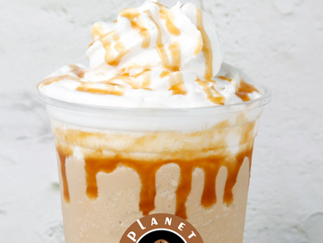 Toffee nut salted caramel , chocolate sauce and espresso topped with toffee nut.