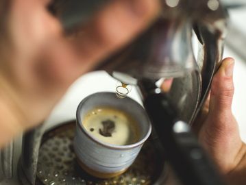 Toasted marshmallows, chocolate sauce and espresso topped with crumbled graham cracker.